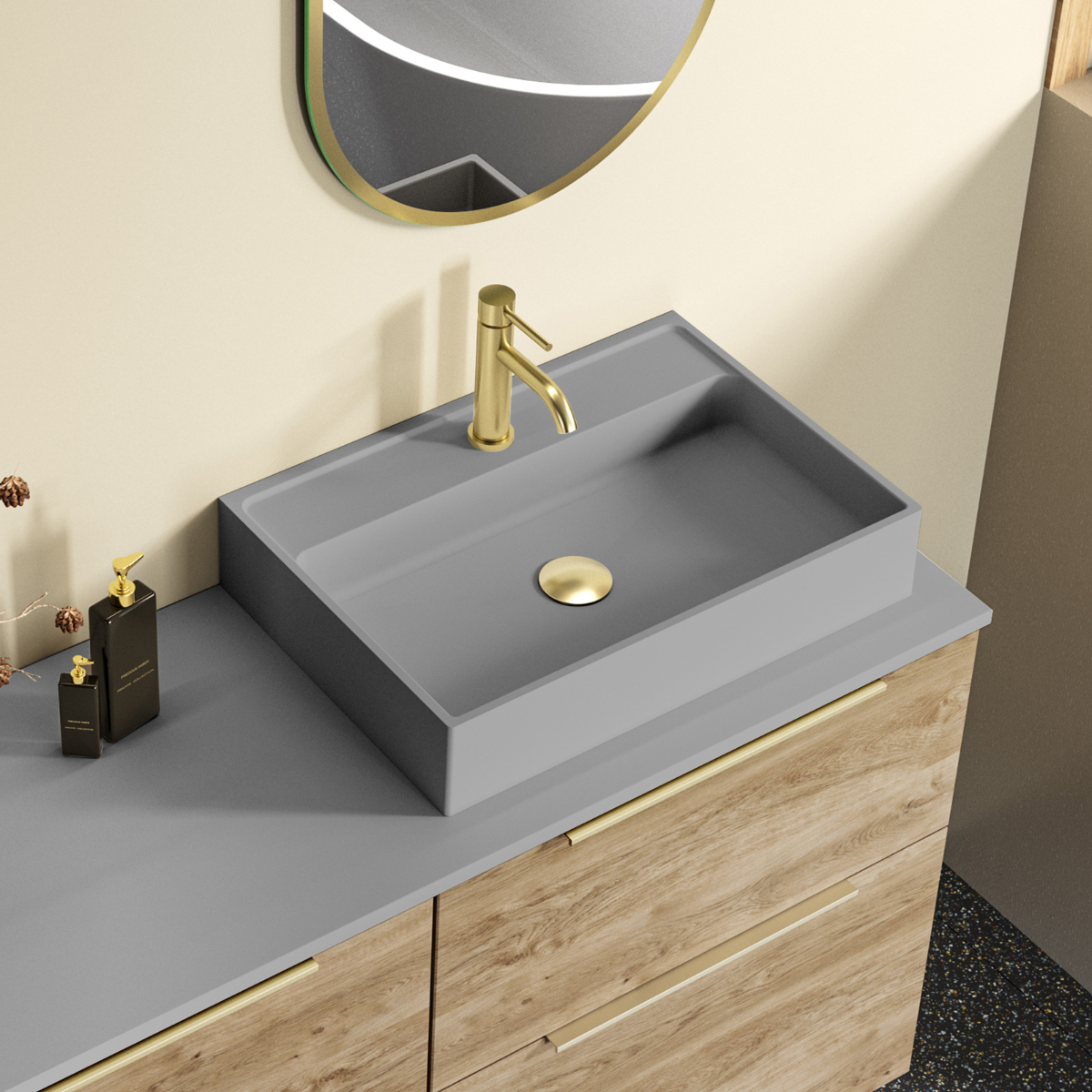 Vasque à poser Saona en résine grise | Vasque rectangulaire | 51,5 cm
