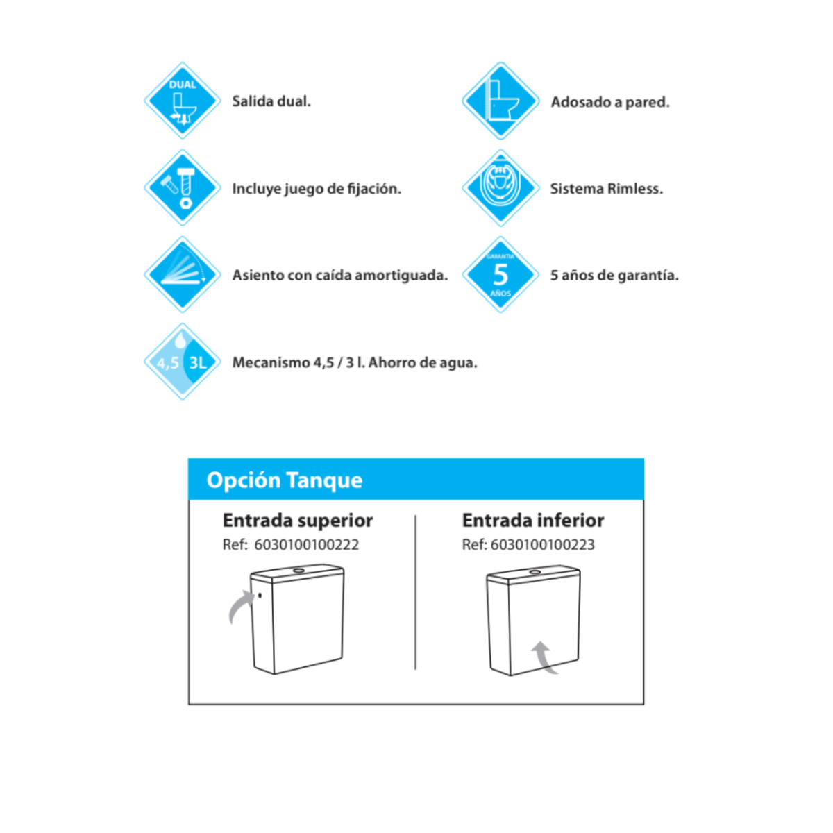 El producto será entregado a pie de calle. El repartidor no sube la mercancía al domicilio. Los productos no tienen la instalación incluida. Tiene derecho a desistir de su compra durante 14 días naturales (salvo en los casos de aplicación del art. 103 de la Ley de usuario y consumidores) en tal caso, los artículos vendidos serán devueltos a las instalaciones de DISFRUTA TU BAÑO por cuenta y riesgo del comprador, incluidos gastos de envío. Le corresponde al comprador comprobar los envíos a su llegada y asegurarse de que las mercancías han sido entregadas dentro de lo normal y en buenas condiciones.