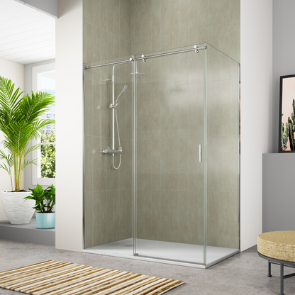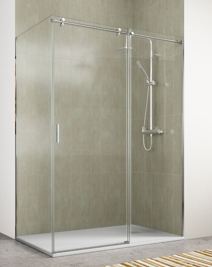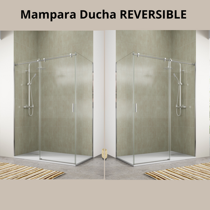 Madrid Mampara de Ducha Rectangular Corredera Acceso Frontal | Vidrio Templado 8mm Antical | Perfil Cromo -