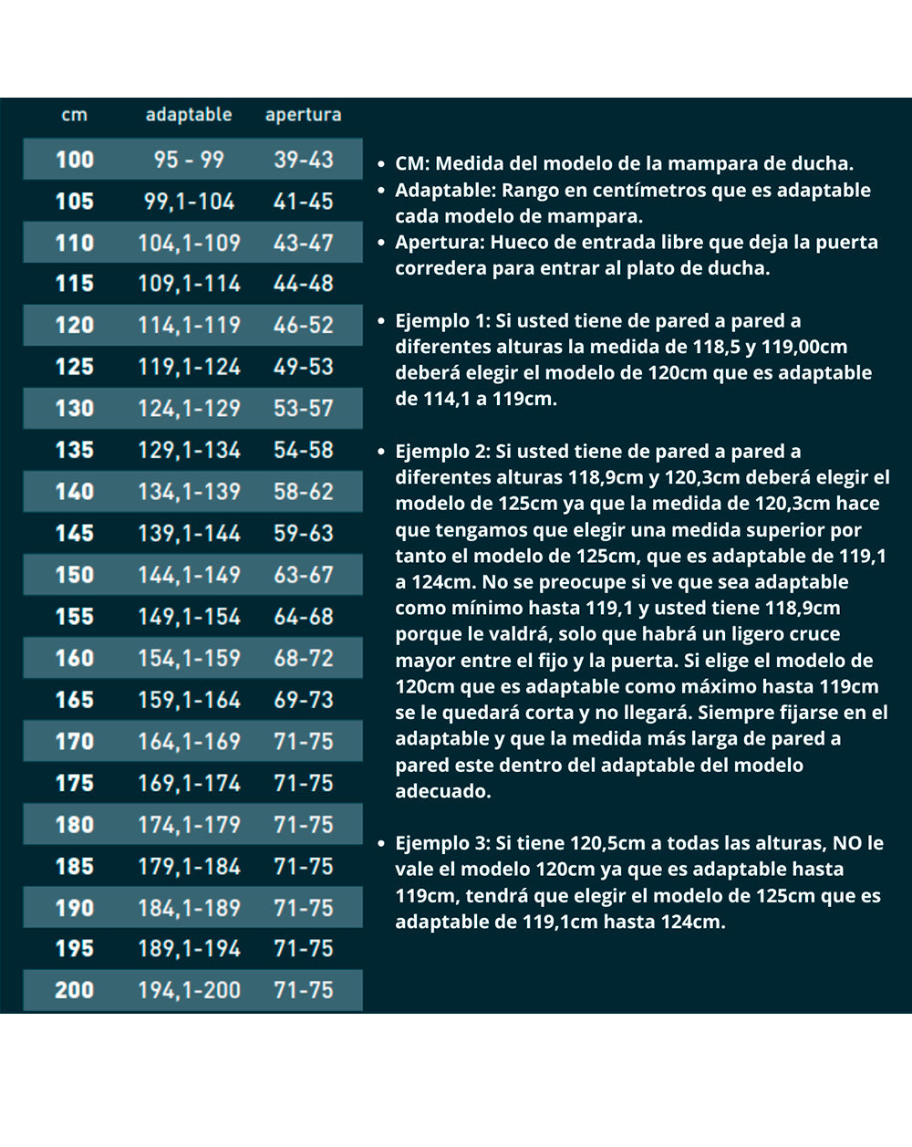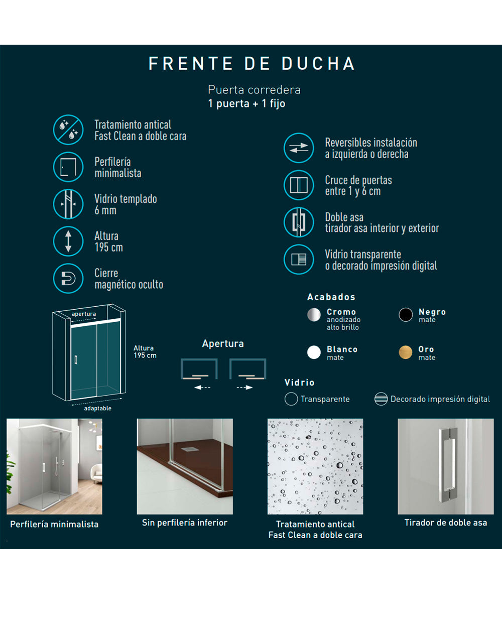 Tamaño Frente Ducha : 100 cm (Adaptable 95-99cm)