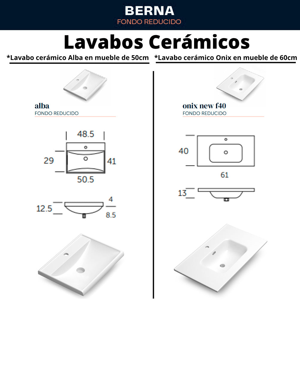 Berna Mueble de Baño al Suelo con Lavabo Cerámico de Fondo Reducido