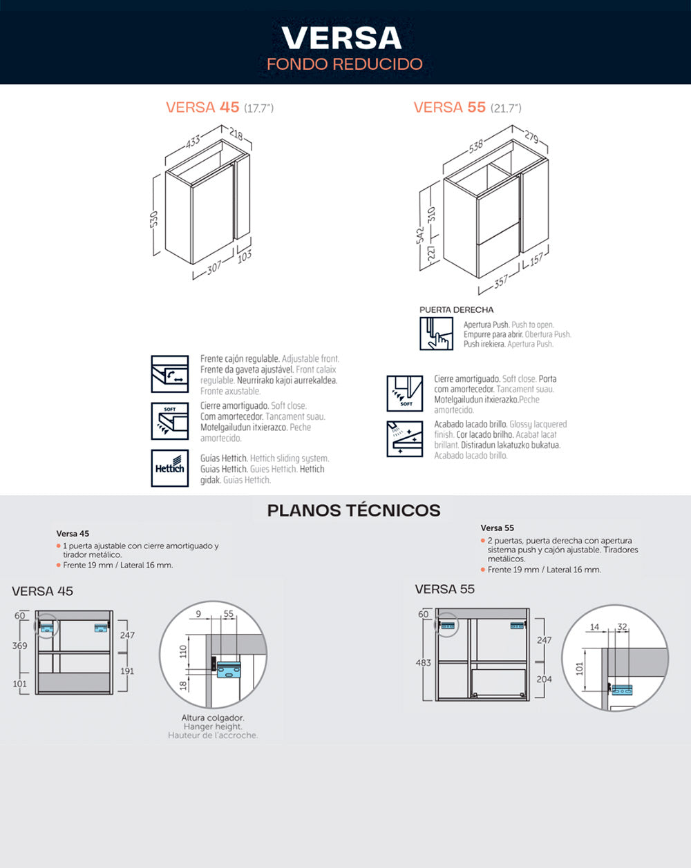 Versa 55 Mueble de Baño Suspendido Fondo Reducido