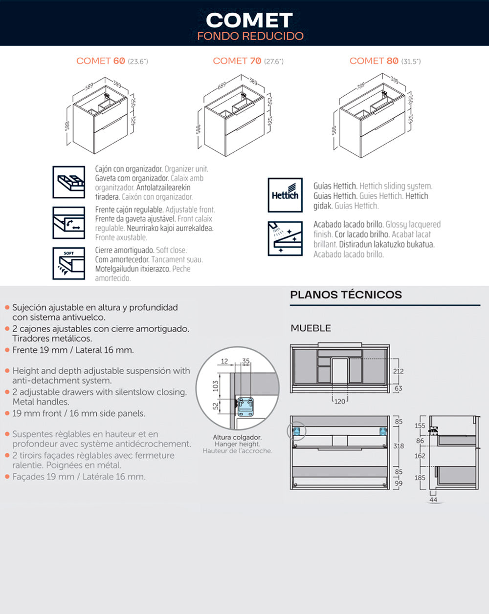 • Listo para instalar: incluye lavabo cerámico. Mueble ya montado.