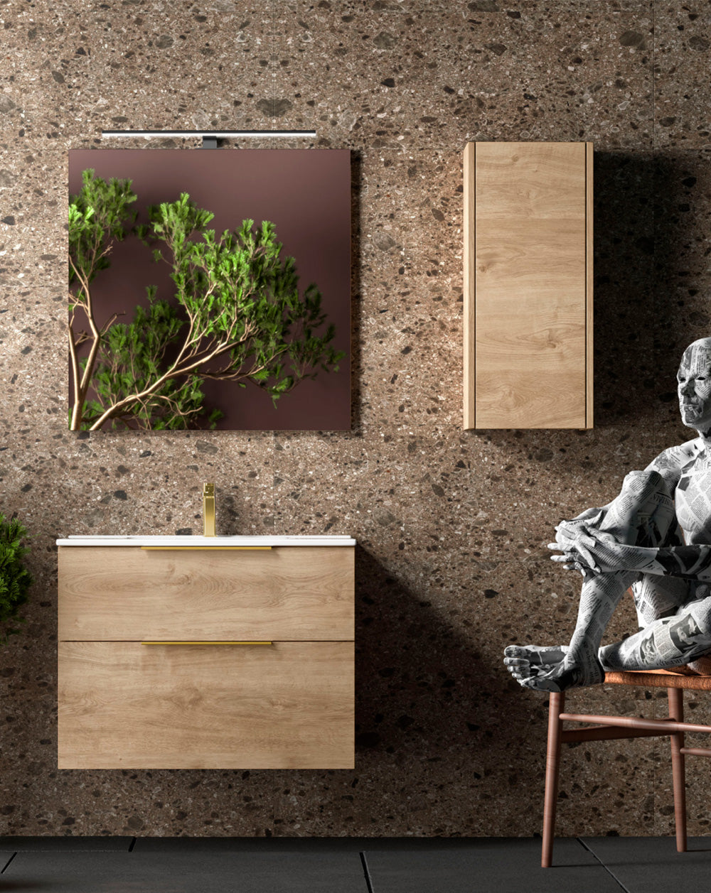Comet Mueble de Baño Suspendido Fondo Reducido | 60 cm Roble Natural