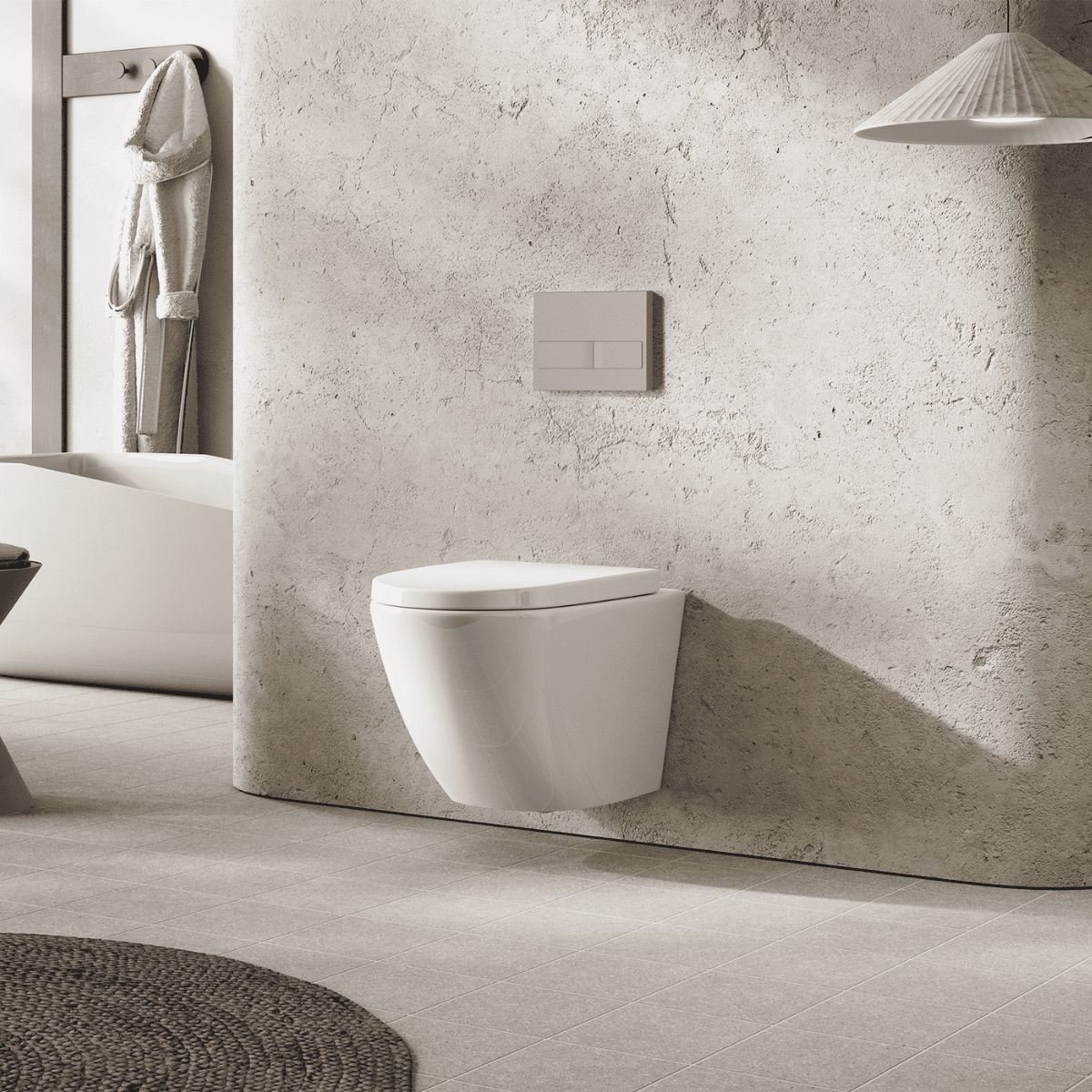 Pack Inodoro Suspendido Blanco Brillo y Cisterna Empotrada Autoportante con Pulsador Cromo | Inodoro Suspendido Blanco Brillo Rimless Sin Borde de Fondo Reducido y Asiento Extrafino con Caida Amortiguada