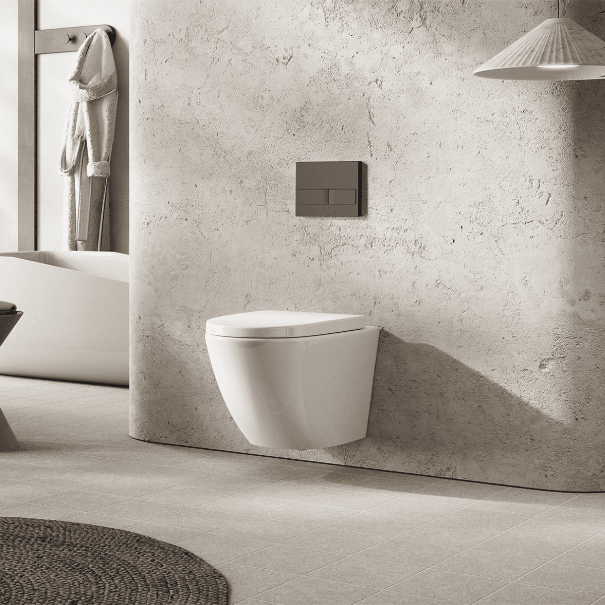 Pack Inodoro Suspendido Blanco Brillo y Cisterna Empotrada Autoportante con Pulsador Negro | Inodoro Suspendido Blanco Brillo Rimless Sin Borde de Fondo Reducido y Asiento Extrafino con Caida Amortiguada