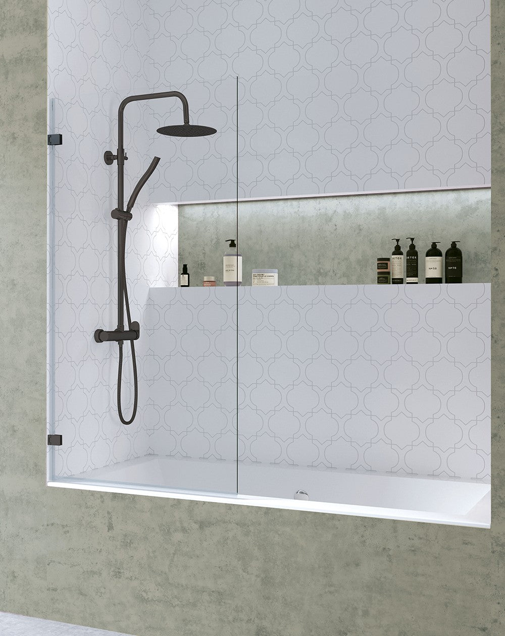 Resguardos de duche para bases de duche entre três paredes. Temos uma...