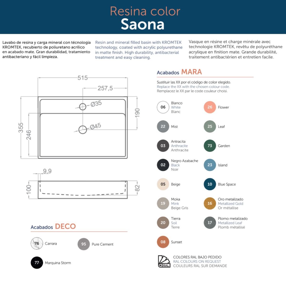 Pia disponível em branco brilhante, branco fosco ou preto fosco.